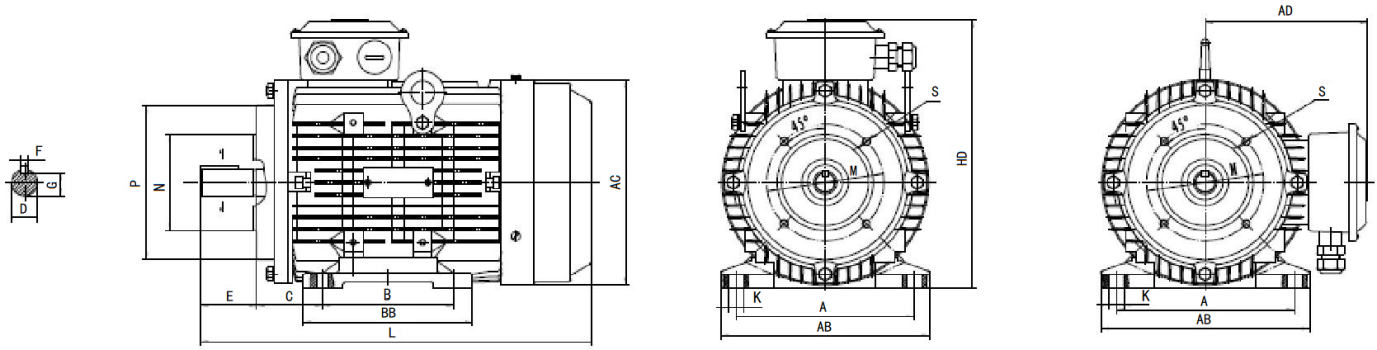 防护等级 IP55(IEC 60034-5);高度不超过海拔 1000 m(IEC 60034-1);允许的环境温度在 -20 ºC ~ 40 ºC(IEC 60034-1);